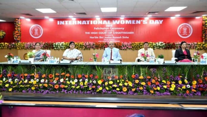 On 10 March 2026, a dignified felicitation ceremony was organized on the occasion of International Women’s Day 2026 at the Unity Auditorium of the High Court of Chhattisgarh, Bilaspur. Following the arrival of the Hon’ble Judges and distinguished guests, the programme commenced with the National Anthem, after which the traditional lighting of the ceremonial lamp marked the formal inauguration of the event. The Chief Guest, Hon’ble Mr. Justice Ramesh Sinha, Chief Justice, High Court of Chhattisgarh inaugurated the session.
